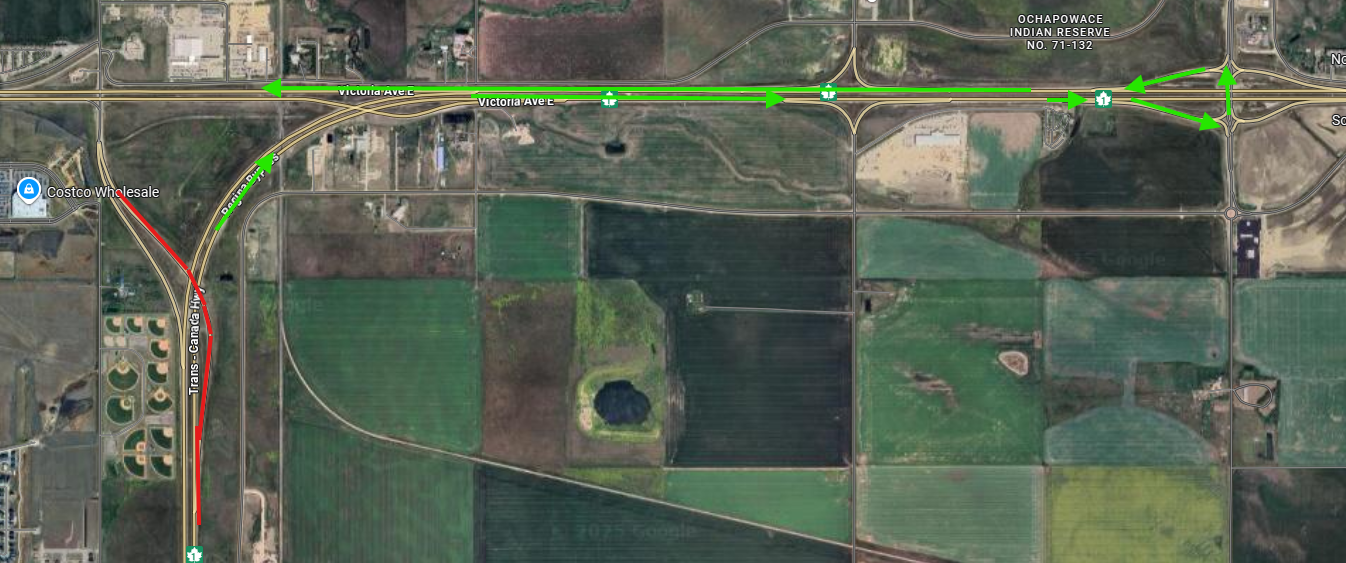 Traffic heading to Regina on Tower Road will be detoured to the Pilot Butte interchange to turn around and enter the CIty on Highway #1 West or the North Service Road.